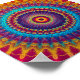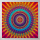 Vermelhos quentes e laranjas são combinados com azuis gelados nesta brilhante e detalhada mandala. Padrão caleidoscópico colorido design