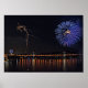 O homem e a natureza se combinam para apresentar uma exibição notável sobre o rio Hudson. Os fogos de artifício de 4 de julho vão para o céu com a ponte de Médio Hudson ao fundo. Tirada do Caminho sobre o Rio Hudson.