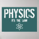 "Física - É a Lei!" texto sujo com símbolo atômico, em t-shirts, botões, adesivos, presentes.