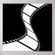 Ícone gráfico simples de preto e branco de uma fita de filme. Personalize e escolha facilmente a sua própria cor de fundo ou adicione texto. Imagem disponível em vários presentes e produtos.