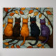 Poster Five Cats on a Tree Branch Stained Glass Style