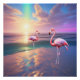 Uma cena de praia fantástica com dois belos flamingos cor-de-rosa com um belo pôr do sol no fundo sobre um belo oceano calmo.