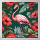 Poster Flamingo Hibiscus Flores Emerald Green