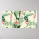 Poster Flamingo rosa e flores exóticas, folhas de palma.