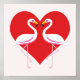 Poster Flamingos Cor-de-rosa branco-claro com coração ver