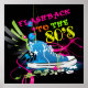 Design de neon fresco e engraçado, com um tênis com asas, espirais néon-rosa brilhantes, flores retrógradas sob o calçado, e as palavras "Flashback para o anos 80" em várias cores neonatais! Como um cara totalmente anos 80!