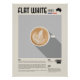 The Ultimate Flat White Coffee Artwork illustrating a perfect cup with aesthetic illustrations, barista measurements, and information.