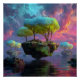 Póster Floating Turquoise Tree Islands Neon Sky