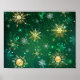 Poster Flocos de neve do Ouro Xmas em fundo verde