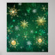 Poster Flocos de neve do Ouro Xmas em fundo verde