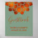 Sinal de livro de presenças de casamento escuro e dramático com uma flor aster de cobre metálico moderno e texto personalizável em fundo verde manjericão. Adicione os detalhes do casal e moldura ou suporte para uma bela exposição na mesa