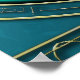 Flor de Elegância, Lotus Místico. A flor de lótus é simétrica e extremamente detalhada, com suas pétalas em tons harmoniosos de lacre, azul e verde. O centro amarelo brilhante da flor adiciona um sotaque vibrante e destaca sua posição central. A design combina a beleza natural com a decoração de ornamentados, criando uma imagem harmoniosa e elegante que é simultaneamente moderna e tradicional.