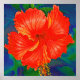 Uma vista de perto de uma flor tropical, uma flor de hibisco vermelha nativa do Havaí.