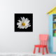 Foto de uma elegante margarida branca com um centro amarelo contra um fundo preto puro.