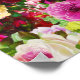 Jardim colorido com arbustos de rosa e outras flores estão em floração de cheio.