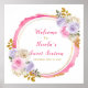 Belo doce e dezesseis festa de aniversário de poster com um quadro brilhante cor-de-rosa, púrpura e dourado com arranjos florais. Perfeito para uma doce festa de aniversário de dezesseis. As palavras podem ser alteradas para se adequarem aos seus próprios detalhes ou requisitos