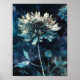 Uma bela floral azul e branca que se parece com um impressão feito ao sol através do Cyanotype com detalhes adicionados de estilhaços de tinta mista.