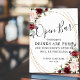 Florais com buquê vermelho-borrado e cor-de-rosa e roteiro oval dourado, bar aberto e tipografia clássica para o sinal de casamento.