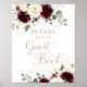 Floral Burgundy Greenery Sinal de Livro de Convidados