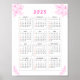 Um calendário anual mínimo de uma página com flores cor-de-rosa. Parece bom em casa e no escritório.