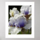 Decorar um espaço com este impressão de poster fotográfico com uma imagem fotográfica de gloriosa íris branca florescendo com sotaques roxos. Uma bela imagem floral! Selecione o tamanho do impressão de poster e outras opções, conforme desejado.