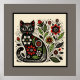 Poster Floral Feline Folk Art