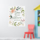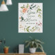 Poster com ilustração aquosa do rosa de damasco e da folhagem verde e o texto "Quantos Kisses estão no frasco". Este sinal de Poster é perfeito para adicionar diversão e entusiasmo ao seu Chá de panela, Festa de solteira ou Chá de fraldas.