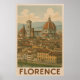 A beautiful illustration viewed from above of Florence with its iconic Renaissance architecture. In the distance, billowy white clouds drift above the rolling Tuscan hills, while sunlight seems to cast a warm glow over the Duomo Santa Maria del Fiore. The word “FLORENCE” is elegantly displayed at the bottom in classic travel-poster style. This wal art is perfect for anyone dreaming of the timeless beauty of Tuscany.