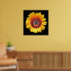 Um girassol bonito contra fundo preto e borda amarela. Inglaterra Reino Unido.