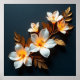 Bela disposição de flores e folhas, apresentando grandes flores brancas com destaques laranja delicados e estames amarelos intrincados.