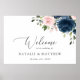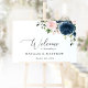 Adicione um toque pessoal à sua celebração de casamento com estes itens de na moda e festa memoráveis! Design apresenta marinho e flores cor-de-água cor-de-rosa pinceladas e verde sobre fundo branco.