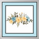 Flores aquarelas com contorno preto dentro de uma borda azul clara.