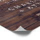 Este clássico poster de casamento ruidoso de flores brancas é perfeito para um casamento outono. O elegante design floral apresenta marfim macio e rosas brancas e peônias com toques de flores azuis-rosadas-periwinkle e folhagem verde sobre um fundo de madeira escura. Personalize o poster com o nome da noiva e do noivo, e a data do casamento.