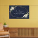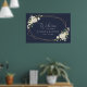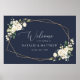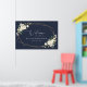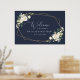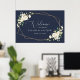Adicione um toque pessoal à sua celebração de casamento com estes itens de na moda e festa memoráveis! Design apresenta flores brancas de aquarela, verde e estrutura dourada sobre fundo azul marinho.