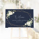 Adicione um toque pessoal à celebração do seu chá de fraldas com estes itens de na moda e festa memoráveis! Design apresenta flores brancas de aquarela, verde e estrutura dourada sobre fundo azul marinho.