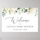 Adicione um toque pessoal à celebração do seu chá de fraldas com estes itens de na moda e festa memoráveis! Design apresenta flores brancas de aquarela e verde em fundo branco.