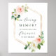Sinal de casamento elegante em memória amorosa apresenta flores pintadas em aquarela em rosa cor-de-rosa, branco e folhagem verde com uma moldura hexagonal dourada. Para personalização avançada deste design, clique no BOTÃO AZUL DE FERRAMENTA DE DESIGN.