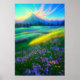 Entre num mundo maravilhoso, onde um belo e colorido campo pastoso floresce com um conjunto de flores vibrantes. A distância, uma charmosa floresta fica alta, enquanto uma misteriosa montanha no horizonte adiciona uma aura de encantamento. Os segredos da natureza se desdobram nesta paisagem cativante, convidando-os a abraçar sua magia.