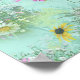 Congelado através de campos de flores com um fundo floral verde-claro com cores amarelas, cor-de-rosa, vermelha, verde e branca para um conjunto de decoração doce para o casal de casamento.