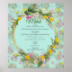 Congelado através de campos de flores com um fundo floral verde-claro com cores amarelas, cor-de-rosa, vermelha, verde e branca para um conjunto de decoração doce para o casal de casamento para personalizar o seu poster de menu