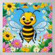 Feliz Cartoon Bee Sorridente voando no campo com flores coloridas