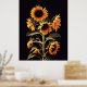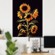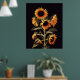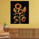 POSTER FLORES COM FOLHAS VERDES EM PRETO
