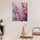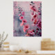 Flores cor-de-rosa delicadas se entrelaçam graciosamente com botões, contra um fundo pastel suave. Essa exibição floral tranquila evoca beleza e calma na natureza.