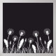 Flores de dandelion. Silhuetas brancas em preto. Desenho a mão. Wall art