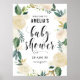 Um elegante e feminino sinal de boas-vindas ao chá de fraldas floral, com flores a aquarelas com sotaques falsos de ouro e brilho. Este sinal de boas-vindas é perfeito para primavera e chás de fraldas de verão. As cores são perfeitas para chás de fraldas neutros em termos de gênero.