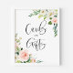 Adicione um sotaque floral à sua capa de tabela de eventos com este cartão personalizável e sinal de presentes. Apresenta buquê floral de cor d'água de flores rosa e brancas e verde. Este cartão floral e sinal de presentes é perfeito para casamentos, chás de panela, chás de fraldas e outros eventos.