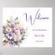 Este sinal de boas-vindas para casamentos mostra um buquê de aquarela pintado com uma fonte de caligrafia incrível e uma fonte moderna.