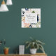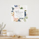 Este poster de casamento branco e marinho florescente é perfeito para um casamento floral. O clássico e elegante design apresenta marinho de aquarela azul e flores cor-de-rosa pinceladas. Personalize o poster com o nome da noiva e do noivo, e a data do casamento.