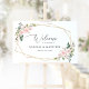 Adicione um toque pessoal à sua celebração de casamento com estes itens de na moda e festa memoráveis! Design apresenta flores cor-de-água rosa pinceladas, verde e moldura dourada sobre fundo branco.
