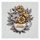 Xícara de café com flores marrom e branca com as palavras "Felicidade reprodutiva".